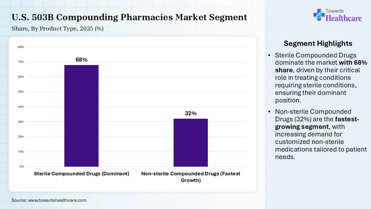 - By product type, the sterile compounded drugs segment dominated the market share by 68% in 2025.